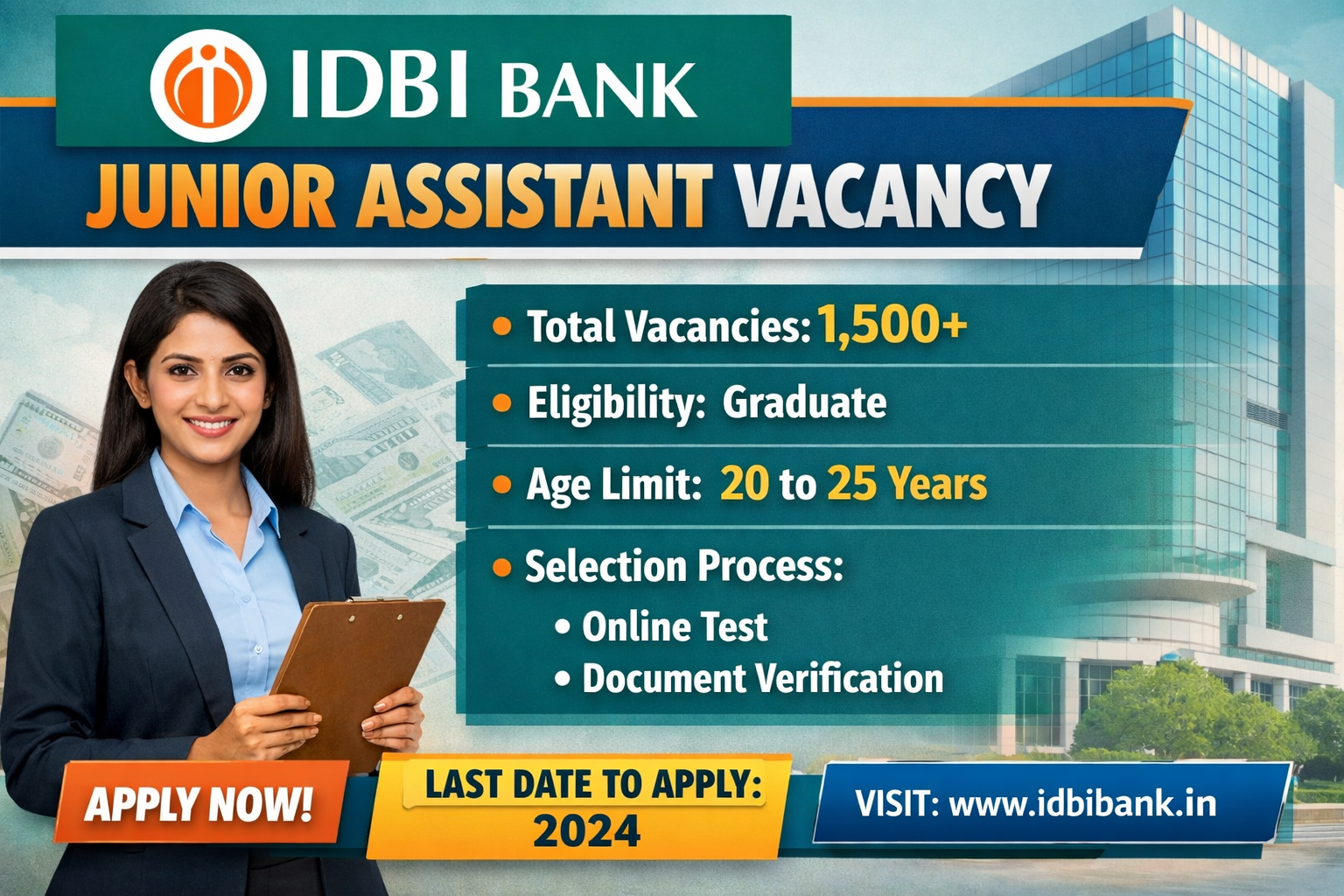 आईडीबीआई बैंक में जूनियर असिस्टेंट मैनेजर के पदों की भर्ती के लिए 2026 का आधिकारिक नोटिफिकेशन जारी किया गया है